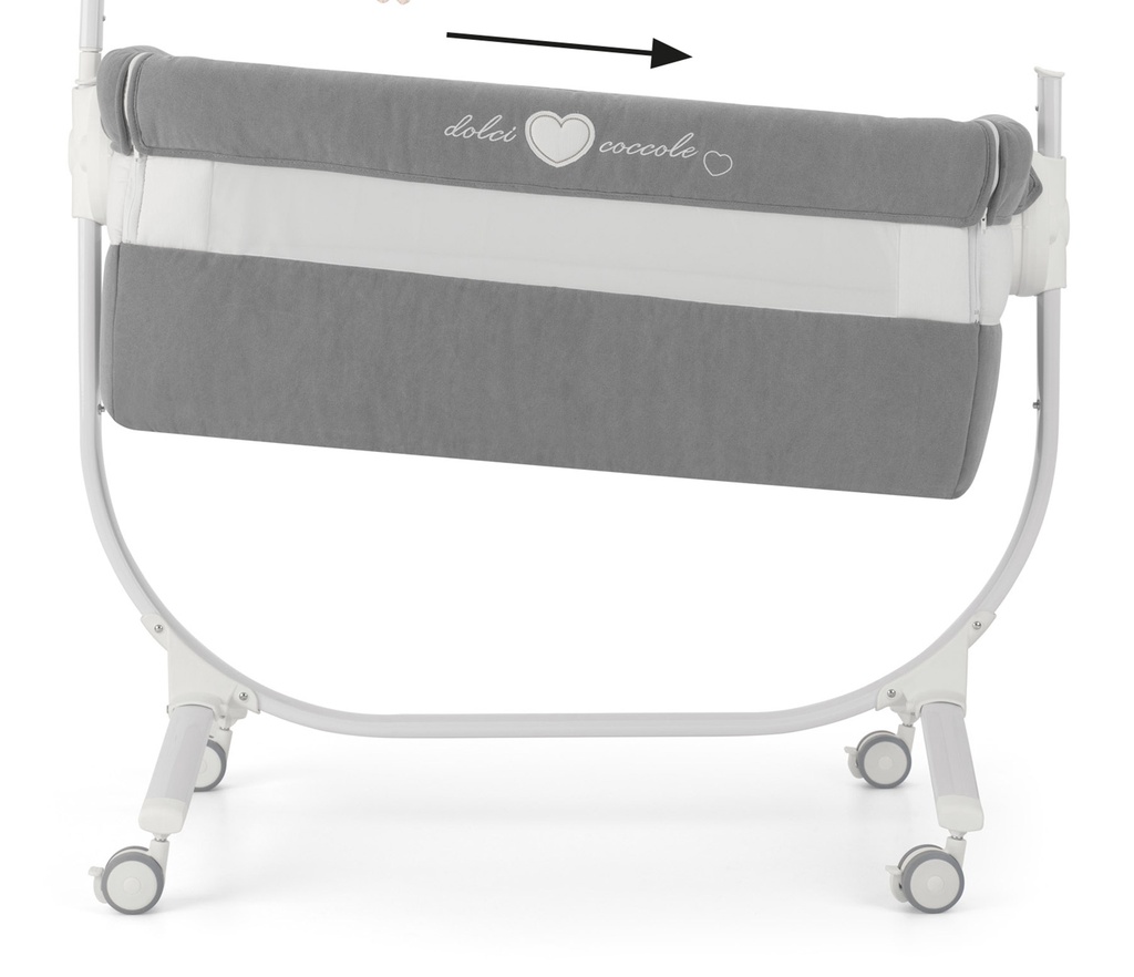 Berceau NEXT TO ME CULLAMI CAM 8 hauteurs, ouverture barrière avant pour fonction co-dodo, position anti régurgitation, mouvement horizontal du berceau (excursion jusqu'à 16 cm) pour compatibilité avec tous les types de lits, fonction bascule, 4 roues multidirectionnelles dont 2 avec frein, sangles pour la fixation au lit. Inclut: structure métallique, barre amovible pour voile et carrousel, petit matelas souple,(L 85 - P 50- H 3),doux tissu interne, fenêtre en maille filet. Conforme à la EN1130 Disponible en Algérie chez www.kissa.dz.