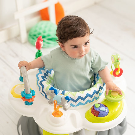Il possède une base très solide et une assise très confortable. La hauteur est réglable sur 3 positions pour s'adapter à la taille de bébé et sa base peut être utilisée de manière fixe ou en mode « Jump » pour que bébé puisse sauter.